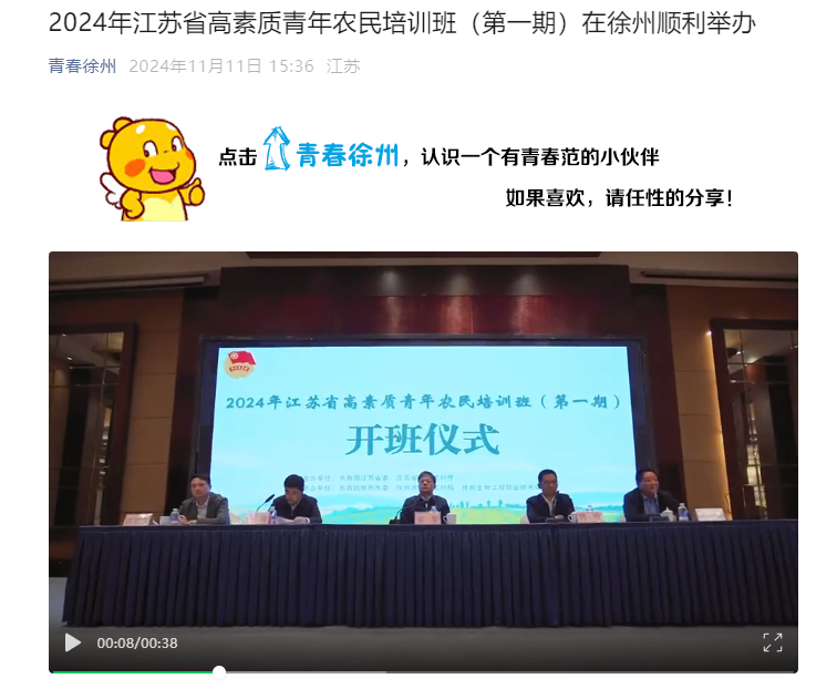 - 2024年江苏省高素质青年农民培训班(第一期)在徐州顺利举办2024-11-11